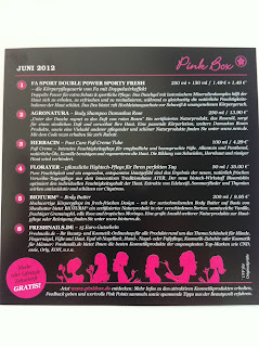 heute habe ich also meine erste PinkBos bekommen und habe mich nach dem Flop der GlossyBox sehr gefreut! Schön finde ich vor allem die Produkte in Originalgröße! Und das Thema Pink hat sich in der Box wunderbar wiederholt...