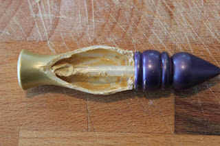 Zuerst habe ich das Gewinde abgeschnitten. Achtet darauf ein Messer ohne Zacken zu nehmen um saubere Schnitte zu bekommen. Hier sieht man schon, dass wohl doch noch einiges an Produkt enthalten sein muss...